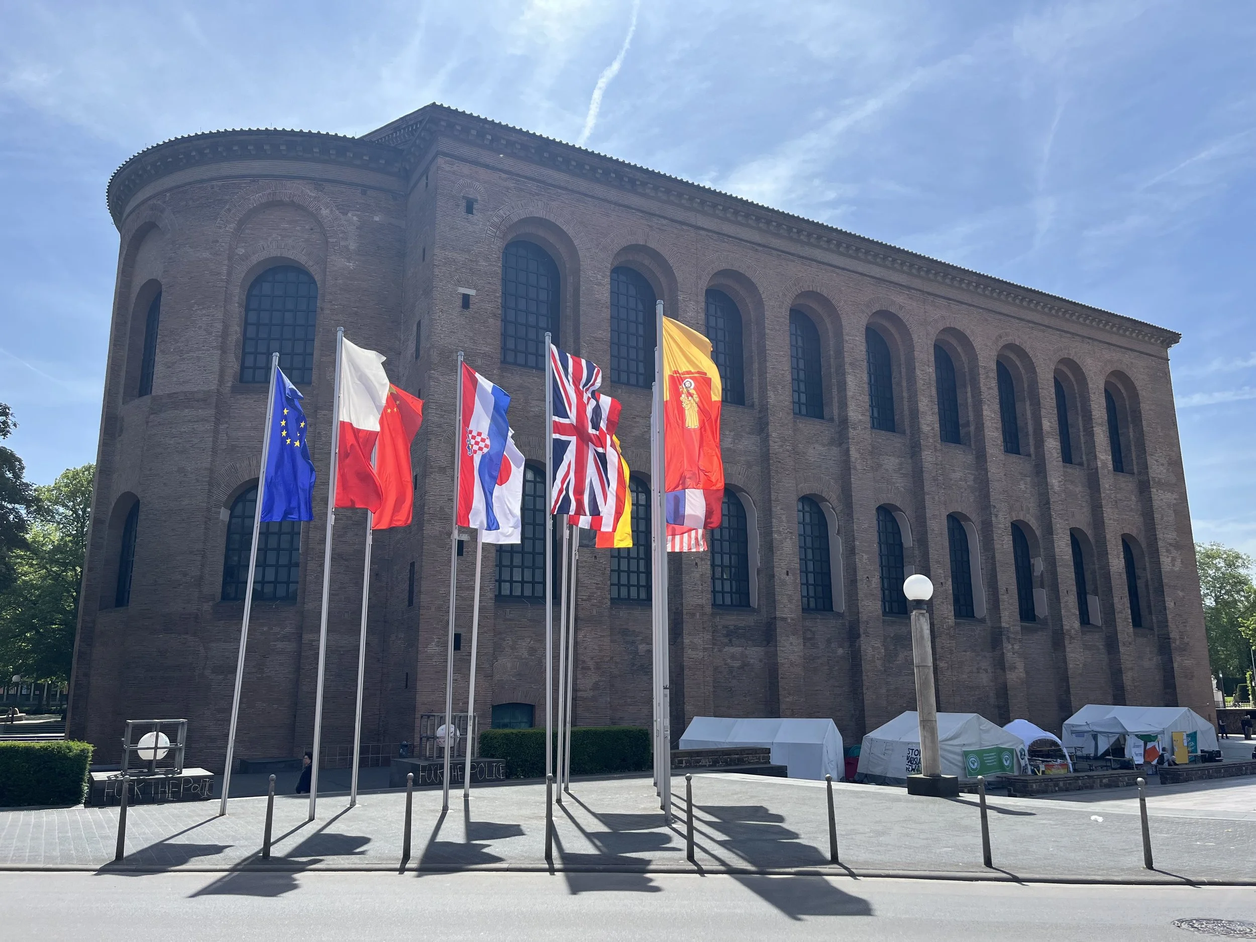 The Basilica of Constantine, also known as the Aula Palatina, was built in the early fourth century CE not as a church, but as the Emperor’s audience hall. Built to impress, it served as the centre of Roman imperial administration and the main venue for prestigious functions at a time when Trier was for a while the seat of the Roman Emperor himself. While only the Basilica itself remains in place today, in the fourth century it stood as the central structure in a larger palace district that also included two smaller halls, situated on each side of the Basilica.